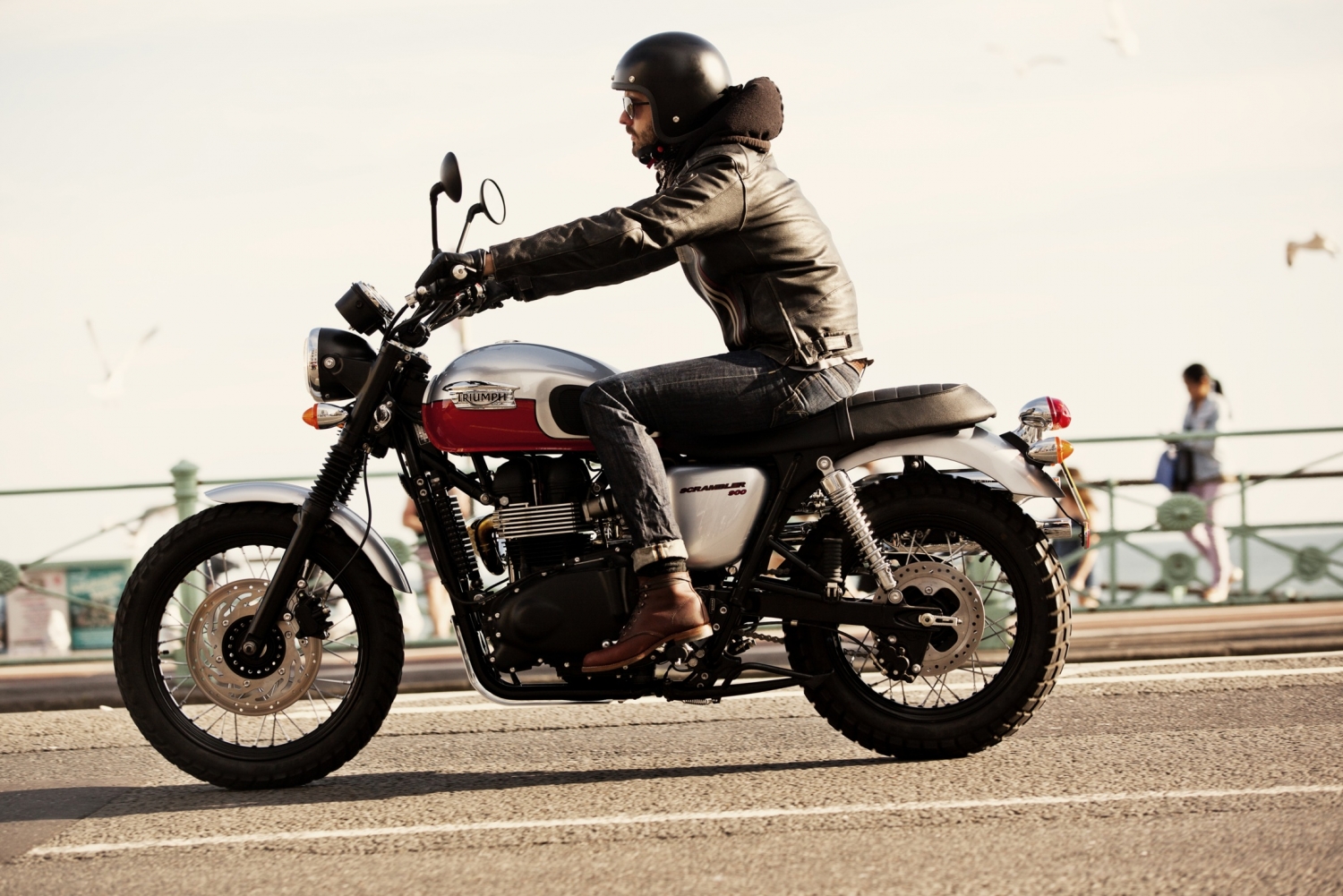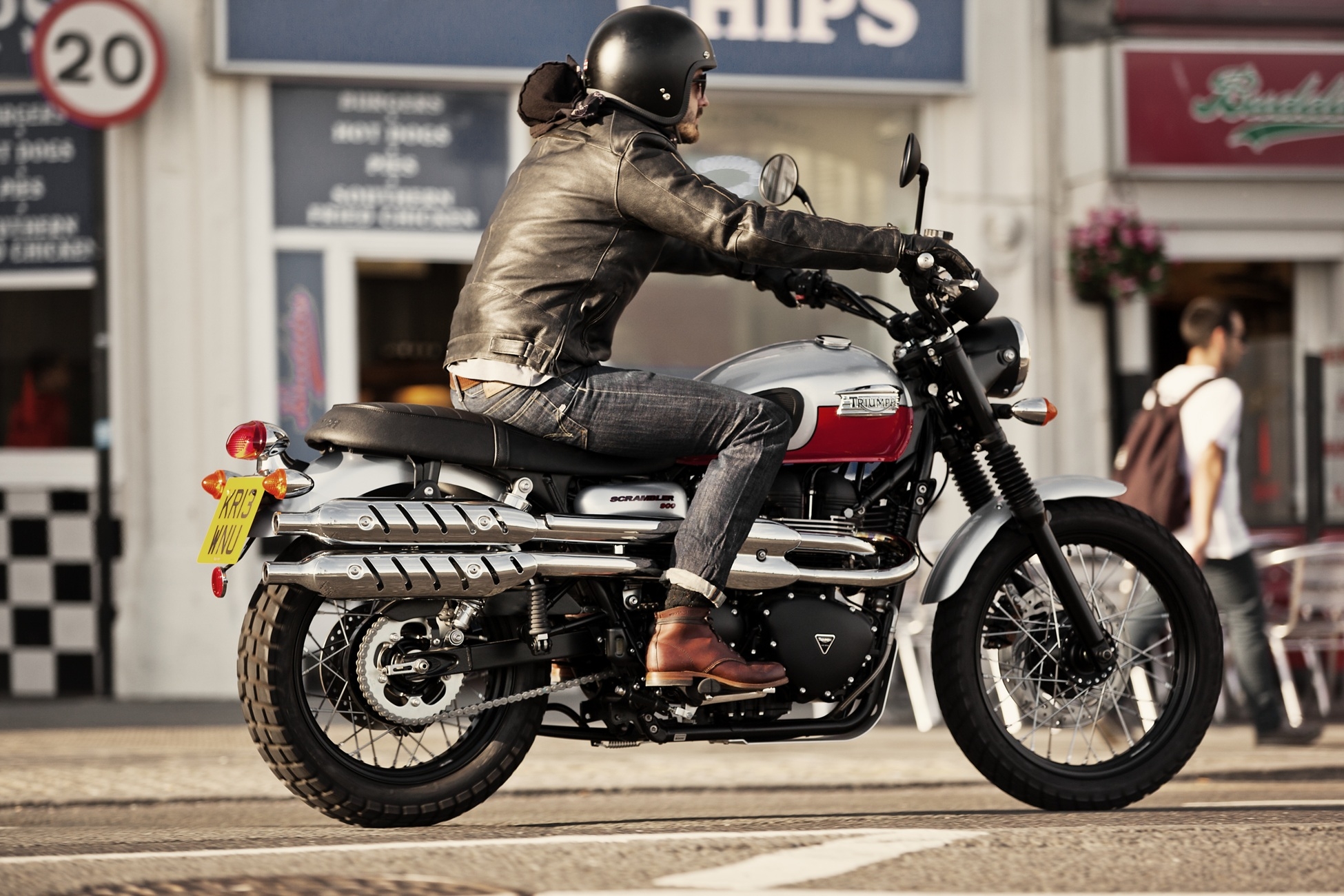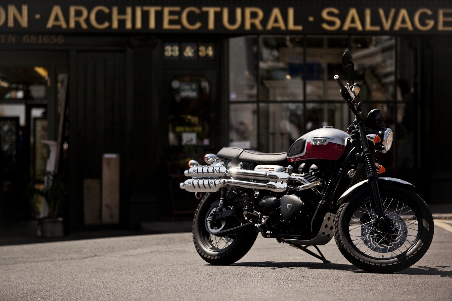 En los años 60, lejos de la civilización y las carreteras asfaltadas, en el desierto, se utilizaban motos basadas en las Triumph bicilíndricas, despojadas de todo lo innecesario, con escapes altos y suspensiones y neumáticos para tierra, con la idea de competir y pasar un buen rato por terrenos accidentados. La Scrambler está inspirada en aquellas motos. Eran extremadamente competitivas y se hicieron muy famosas por ser las favoritas de la estrella de Hollywood Steve McQueen para competir y por placer. Incluso participó con una de ellas en el Trial Internacional de los Seis Días de 1964, celebrado en la Alemania del Este. Hemos construido la Scrambler de forma que evoque ese espíritu de libertad y evasión de una época despreocupada en la que lo único importante eran una moto y un destino de viaje.