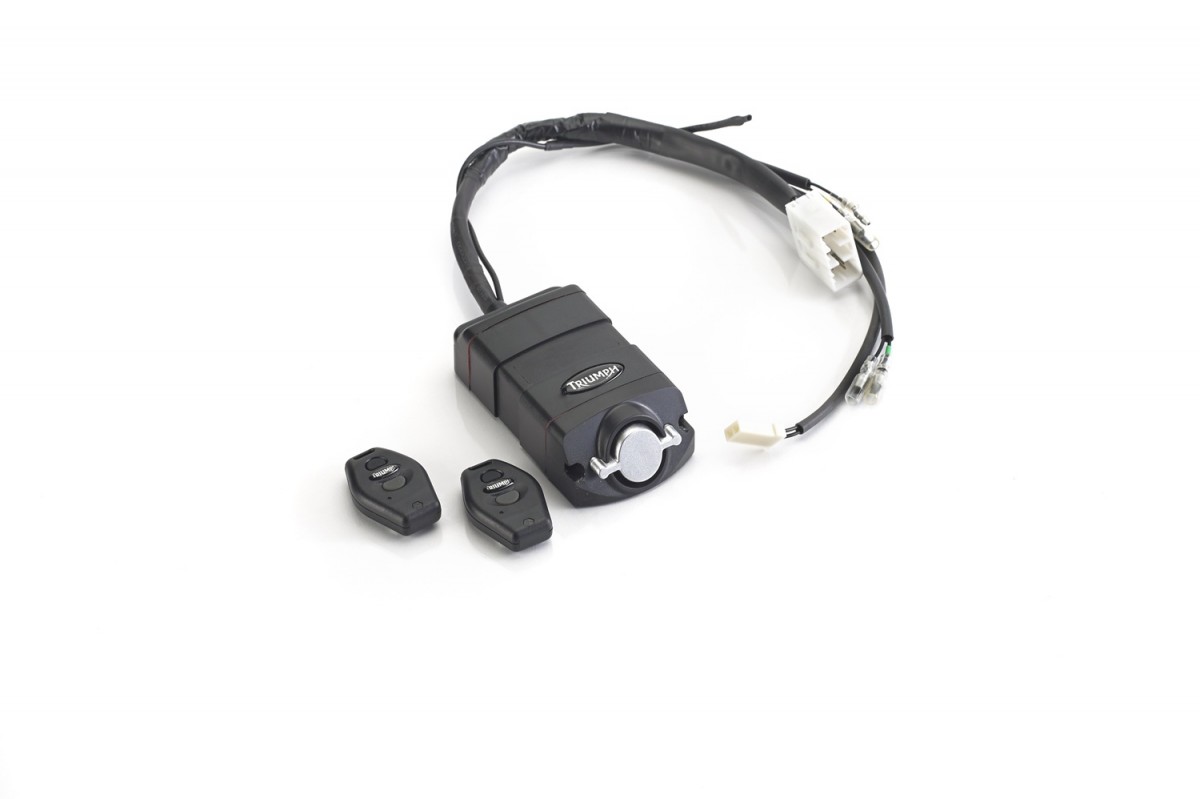 Sistema de alarma e inmovilización a medida aprobado por Thatcham (CategorÃa 1) y diseñado por Datatool. Todas las alarmas Triumph están equipadas con un conector especÃfico para el sistema de cableado de la moto. De esta forma, la instalación es más sencilla y no requiere modificaciones de importancia en el sistema eléctrico de la motocicleta. Presenta una estructura de resina, resistente al agua y a las vibraciones. Incluye dos mandos resistentes al agua.