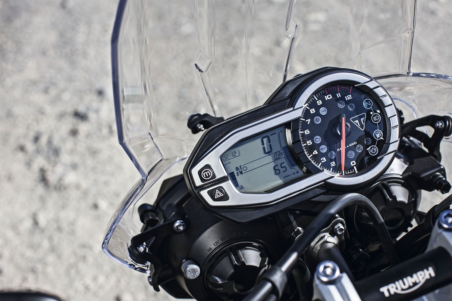 | Panel de Instrumentos y Funciones | Cuadro de instrumentos con tacómetro analógico, doble display LCD: fijo y multi-función. El display fijo muestra la información de velocidad, marcha engranada, nivel de combustible, aviso de mantenimiento, reloj, temperatura ambiente y temperatura del líquido refrigerante, estado del control de velocidad y velocidad marcada. El display LCD multi-función muestra el estado y permite seleccionar los tres Modos de Conducción (Rain, Road y Off-Road), ajuste de la pantalla, configuración de la suspensión (TSAS), ordenador de a bordo (distancia recorrida, tiempo en marcha, consumo medio y velocidad media), odómetro, aviso de autonomía, consumo instantáneo y menú de ajuste. El panel es apto para mostrar el estado de diversos accesorios como el TPMS (sistema de control de la presión de neumáticos) y los puños y asientos calefactables, cuando éstos se encuentran instalados. |