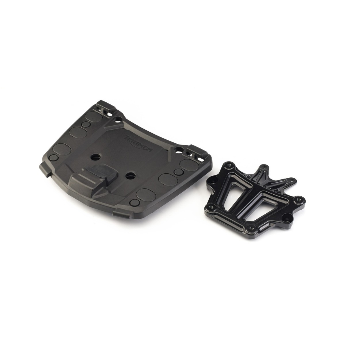 Sliding Carriage mechanism facilitates mounting of a top box. Features floating mechanism allowing the top box to move independently to ensure the handling characteristics are unaffected, even when fully loaded. Also incorporates an automatic electrical connection when the top box is installed.