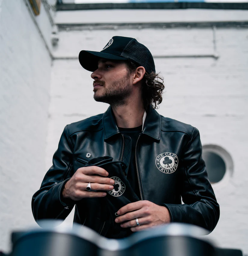 TRIUMPH ACE PRINTED LEATHER JACKET M