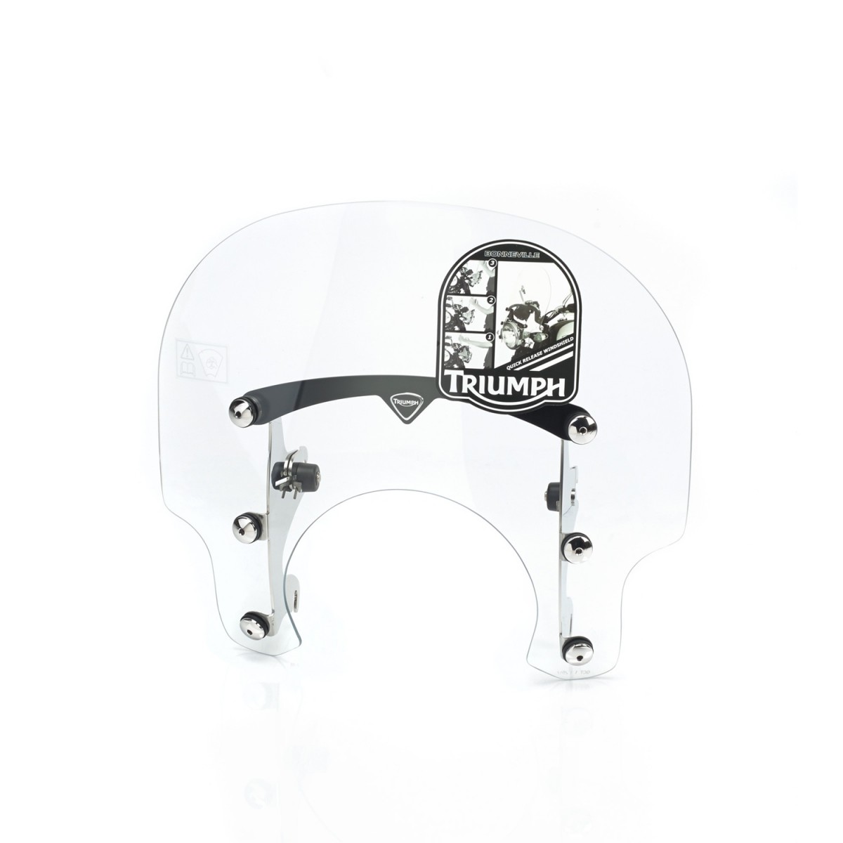 Pantalla de policarbonato con tratamiento Quantum, de una alta durabilidad y resistencia a los arañazos. Dispone de mecanismo "Quick Release" y tiene una altura de 27 cm. desde la parte superior del faro delantero. Apta para Bonneville y Bonneville SE. Se puede instalar con el kit de bloqueo A9700761. (Producto asociado a VIN especÃfico; por favor, consulta con tu Concesionario Oficial Triumph)