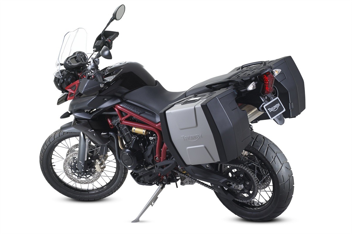 Con una capacidad de 62 litros para su equipo, el kit de alforjas Triumph 2 Box (A9508166) presenta una construcción moldeada por inyección totalmente resistente a la intemperie.
